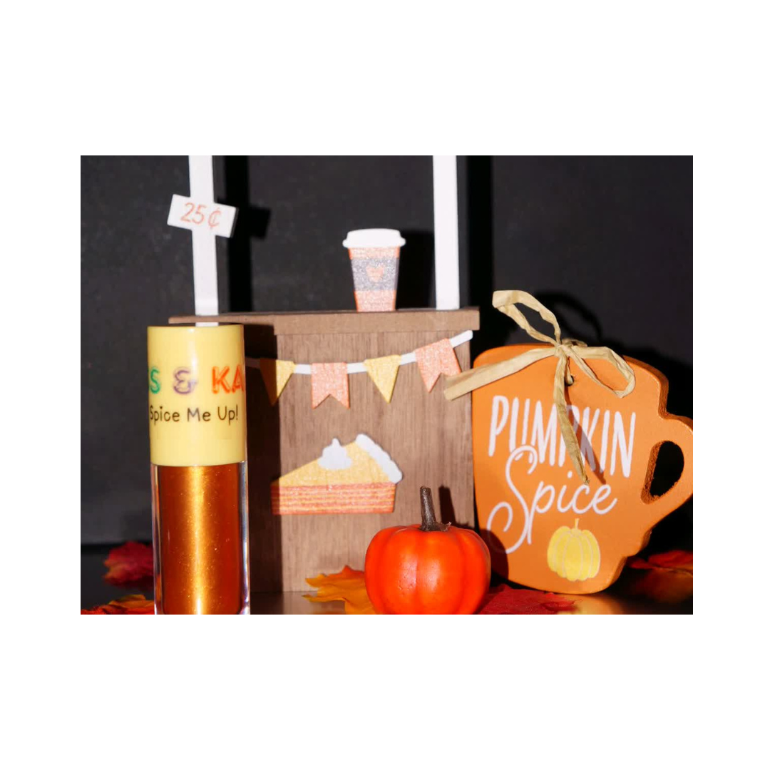 Spice Me Up Lip Gloss is a red gold and orange red pigmented lip gloss with a pumpkin spice flavor.ย